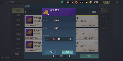 4、获得百年兽皮后可以直接寄售到拍卖行,会有许多玩家来先抢订购。