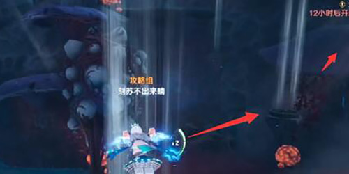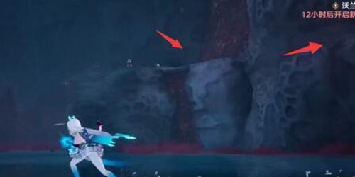 2、使用能量手炮登上箭头所指的石台上,然后跟着箭头走,登上石台之后,击杀两个小怪,朝箭头方向移动。