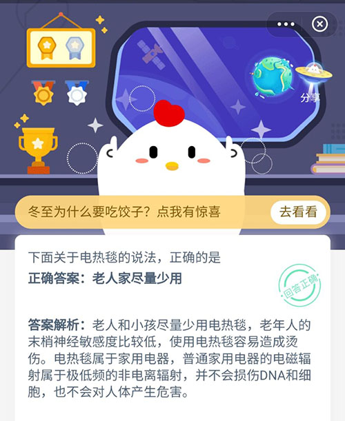 关于电热毯的说法正确的是 支付宝蚂蚁庄园12月22日答案