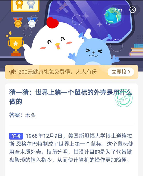 世界上第一个鼠标的外壳是用什么做的 支付宝蚂蚁庄园3月16日答案