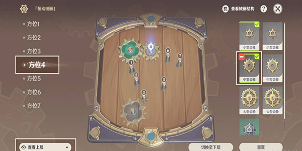 第二步 : 左边,选择“方位4”,“ 查看上层 ” 。 右边,选择“中型齿轮”。