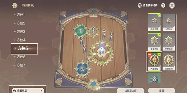 第三步 : 左边,选择“方位5”,“ 查看双层 ” 。 右边,选择“大型齿轮”。