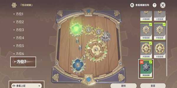 第五步 : 左边,选择“方位7”,“ 查看上层 ” 。 右边,选择“双层齿轮”。