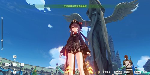 3、【教堂前用花朵装扮的神像】的指定拍摄位置就在风神像的正前方,调整角度把风神像整个纳入取景框拍照即可完成任务