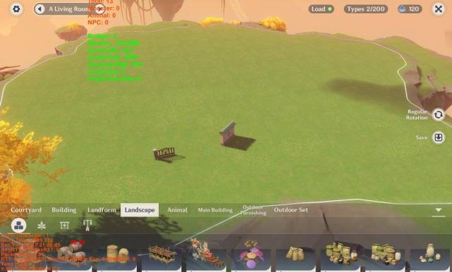 风景里面有四种类型的选项,看起来应该是堆积物、植物、屏风和路灯,这些东西都是大地图里经常能够看到的,基本上包含了大部分类型,别说是建造家园,造一个村子都够了。