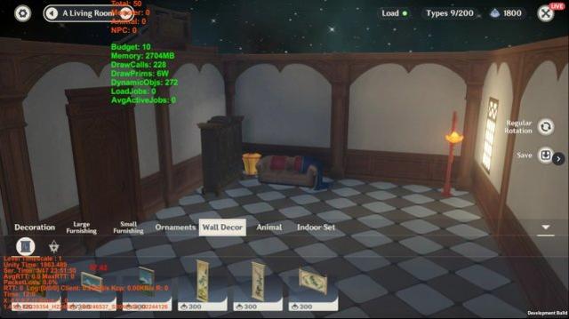 室内装饰分为大型家具、小型家具、装饰品、墙面装饰、动物、室内套装。室内部分有《崩坏3》宿舍系统的经验,应该不会太差,就是不知道室内有没有什么特别的玩法,如果能出一些保存体力或者提升角色经验的家具更好。