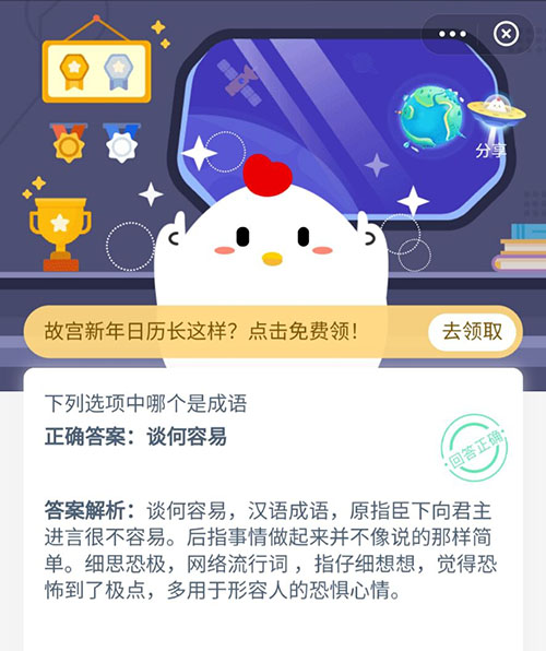 谈何容易和细思恐极哪个是成语 支付宝蚂蚁庄园12月8日答案