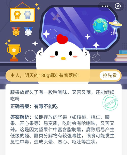 腰果放置久了有哈喇味又苦又辣还能继续吃吗 支付宝蚂蚁庄园12月11日答案