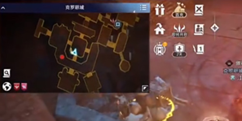 4、走到克罗恩城的下面位置,左下角可以看到一个红点。