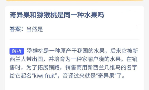 奇异果和猕猴桃是同一种水果吗 支付宝蚂蚁庄园4月13日答案