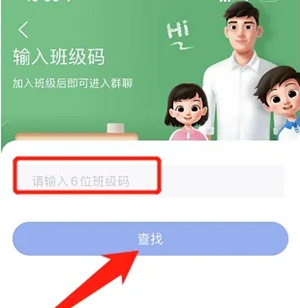 3、输入老师给你的班级码,点击“查找”,加入班级即可。