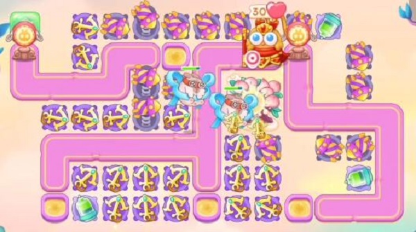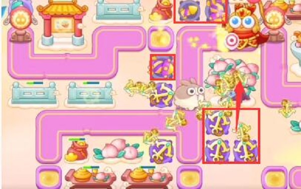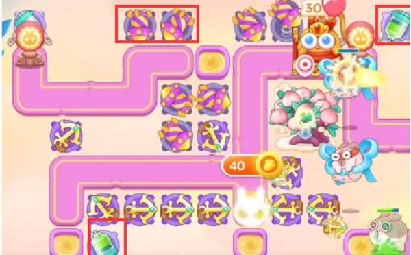 1、本关能够使用的炮塔是:毒针、闪电炮、船锚、导弹,这一关我们只能用船锚玩,注意用导弹放空。