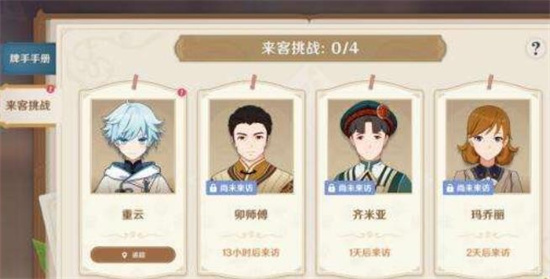 当牌手等级达到3级时,周一会直接出现4位访客挑战。