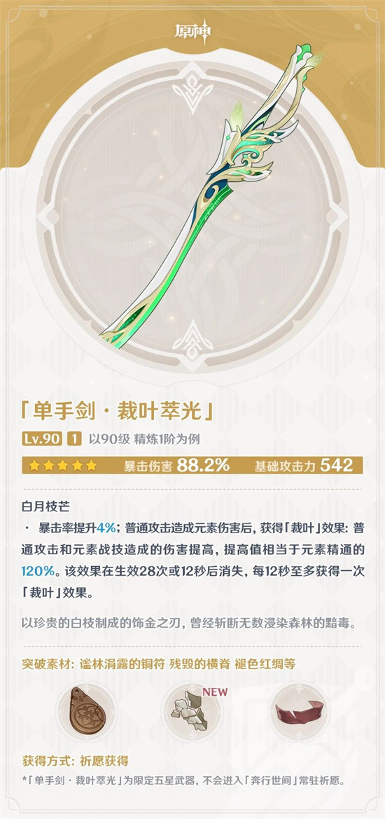原神裁叶萃光怎么样还能给谁用-原神裁叶萃光强度及泛用性分析