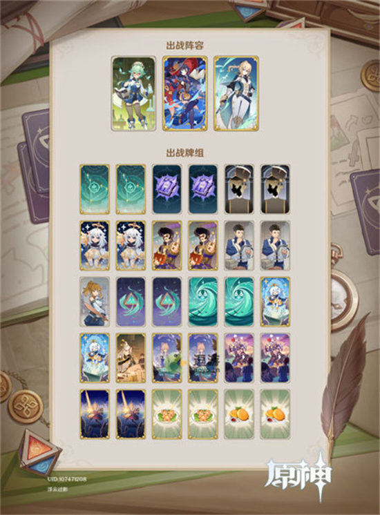 5、面对双岩或者老八这种皮糙肉厚的卡组属实有点难打,所以卡组满编了大派蒙和立本,在适当的时机拍下,我们利用单回合12骰左右,配合水伤+1,疯狂扩散,才能拿下这种卡组。