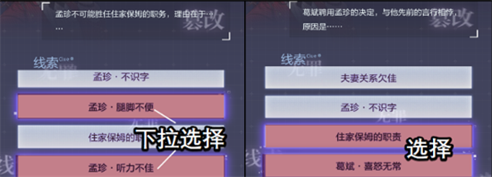 下拉选择【孟珍听力不佳】和【孟珍腿脚不便】,【葛斌喜怒无常】【住家保姆的职责】。