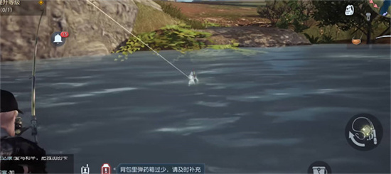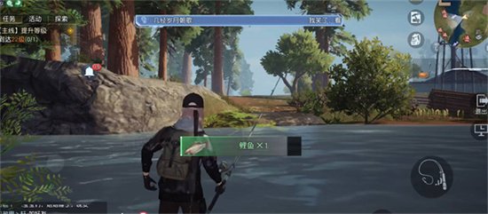 2:寻找水源,当你拥有了鱼竿之后,就要找到有水源或者有河的地方才能钓鱼,不同的位置钓到的鱼是不一样的,我们靠近水源之后,攻击键就会变成钓鱼了;
