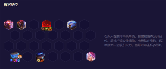 组成棋子:卢锡安、墨菲特、李青、崔斯特、普朗克、、伊泽瑞尔