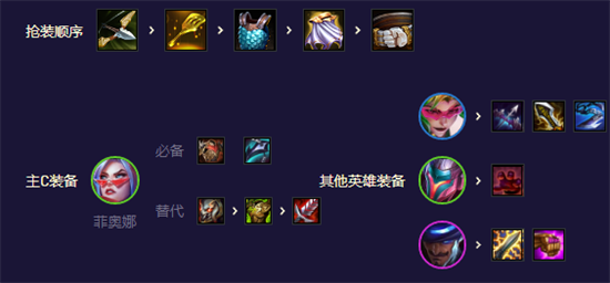 羊刀和饮血这套攻击装备前期猛,后期扛不住伤害,可以把剑姬看作一个坦克,有坦度就有持续输出。副C薇恩:优先破甲,其次无尽,巨杀。后期卡牌带法强装备,电刀,法爆优先。安妮带多余肉装,如亚索三星:偷偷,肉装、攻击装也都能带。