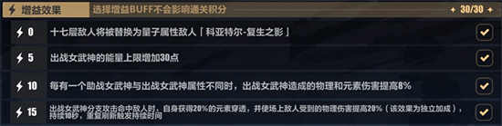 第17层boss选量子泥鳅,然后再选能量上限5、助战属性不同加伤10、分支元素穿透15。