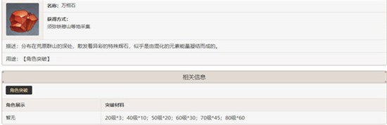 1:目前为止游戏中并没有万相石的用途,但是根据网上的资料显示,这个万相石是一个角色突破材料;