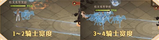 7、骑士数量达到3个时,第一段冲锋会增加技能宽度(4骑士不再增加技能宽度)。