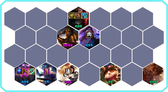 目前T1中的法系阵容,较为克制后排阵容。这个阵容,不是在7人口追3星,除非有转职,因为他全2星强度很高,能直接上8。上8后D出2星拉克丝和皇子,是非常大的提升。缺点是前排薄弱,且很依赖6级D卡,想吃鸡很依赖三星维克兹和三星乌鸦。
