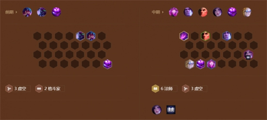 3-2拉6人口搜一大波,开6法师3虚空(在有一个法转的情况下),把斯维因、塔里克等体系卡搜到两星,然后看数量和经济情况在6级D出三星斯维因或者上7找拉克丝,上8补阿狸,阵容成型,在有两个转职的情况下也可用慎和卡尔玛替换掉发条和卡莎。