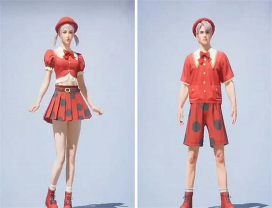 2、100级奖励皮肤-妙红点点。女角色是可爱的双马尾可俏皮短裙,男角色则是波点的裤子。