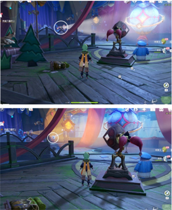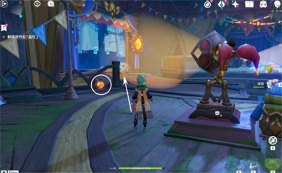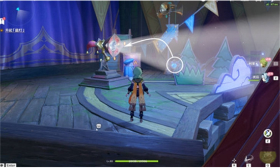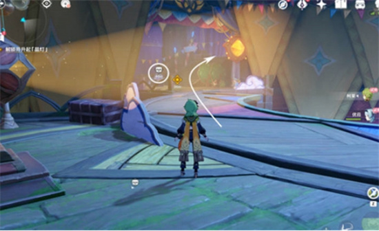 2、接着走到帐篷前,对话就能进入,还需旋转入口左手边的彩灯,升起帷幕。