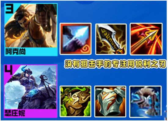 主C阿克尚:飓风+无尽之刃+锐利之刃/狙击手的专注