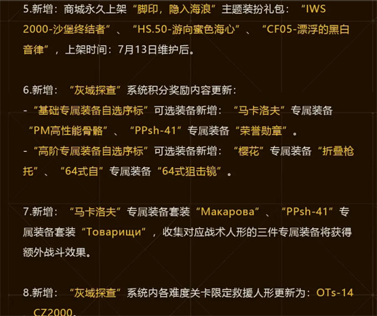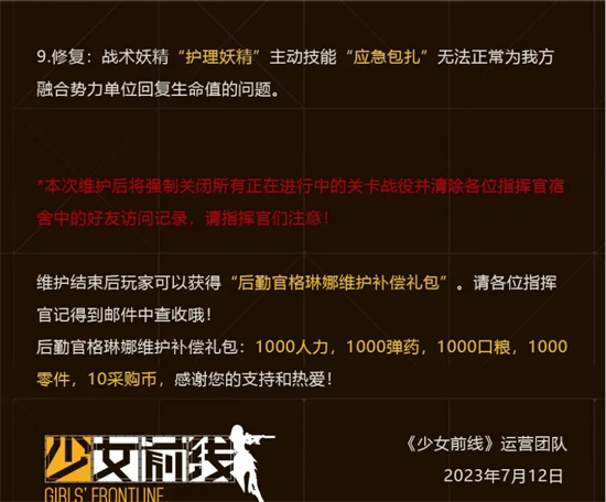 少女前线7月13日更新公告包含哪些内容