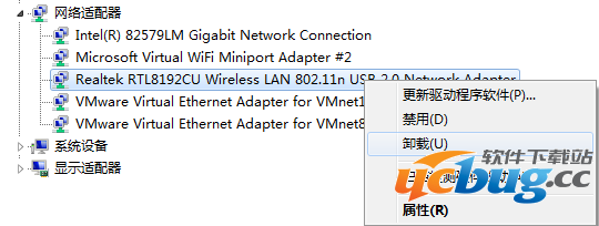 2、设备管理器中卸载无线网卡,重新扫描硬件驱动。