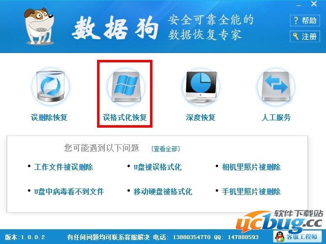 第一步:打开您电脑中的数据狗数据恢复软件,进入软件主界面,选择“误格式化恢复”模式,如下图所示