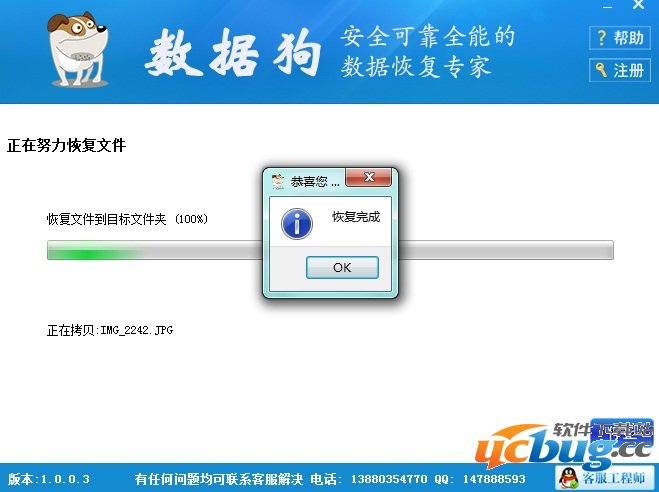 第五步:等待数据恢复完成,完成后点击OK按钮,如下图所示。