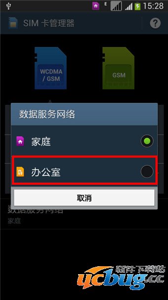 5.此时,若“家庭”为选中状态,则说明您正在使用名为“家庭”的电话卡进行上网,当您需要使用另外一张电话卡上网时(这里以名为“办公室”的电话卡为例),请点击【办公室】,即可切换名为“办公室”的电话卡上网。(电话卡名称可自行修改,此处仅供参考。)