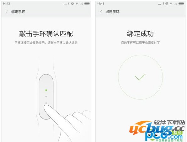 配对成功后系统提示“敲击手环确认匹配”此时轻拍手环即可