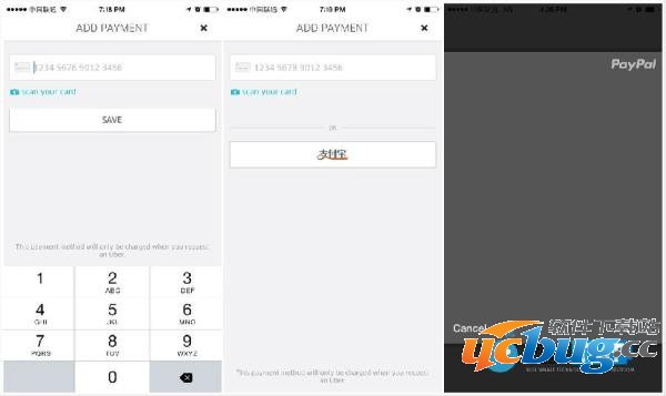 高大尚的Uber有且只有两种支付方式,绑定银行卡支付和支付宝支付。如上图左手所示,初期使用时多次点击支付宝对话框,没有反应。多次尝试后,终于人品爆发终于进入了支付宝登陆界面,却因为手机上的支付宝登陆问题(与Uber无关)关联失败。
