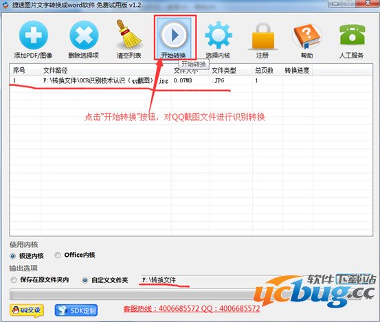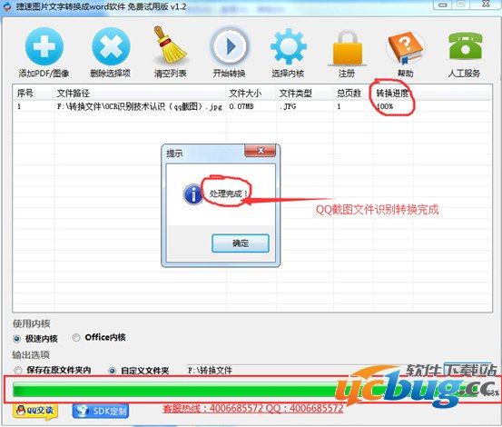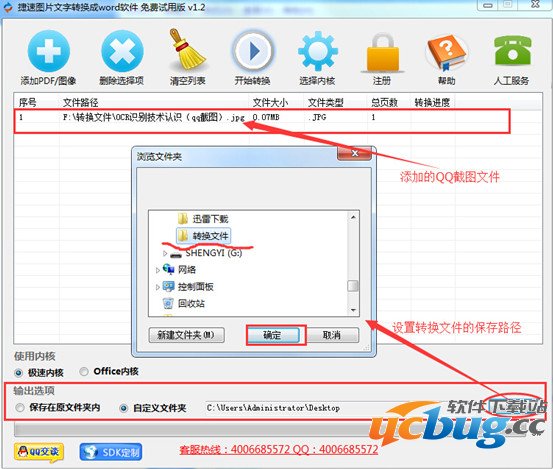 步骤2:打开捷速图片文字转换成Word软件,将qq截图文件添加到软件中。用户可点击“添加文件”按钮进行添加图片,也可直接将图片拖拽至软件中