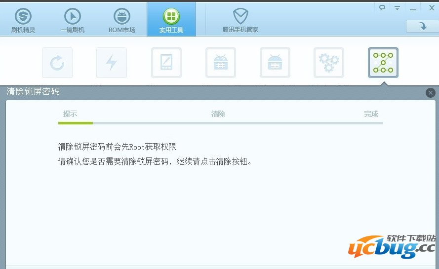 2、解除手机解锁图案需要获取root权限,如果没有获取的可以在这里面点击获取root权限的选项。 获取了直接点击清除锁屏密码