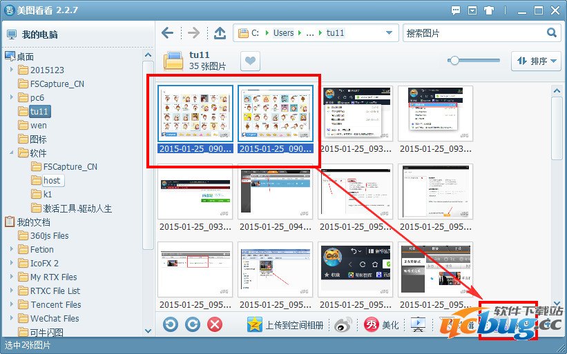 1、首先我们打开美图看看,然后选择我们要拼图的图片(按shift是选定连续的,按ctrl是不连续的)。然后们点击拼图,就可以在弹出的对话框中看到我们刚刚选择的两张链接起来了
