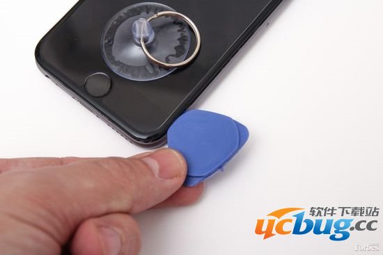 第5步:使用撬片撬出屏幕。从主页键开始绕着屏幕一点一点向上撬。