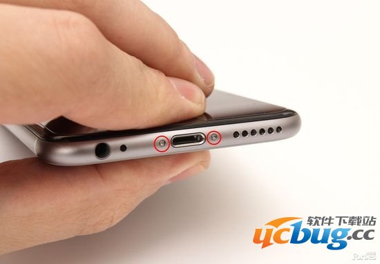 第2步:找到手机充电接口两侧的两颗五角形螺丝。打开iPhone 6你只需要拧开这两颗螺丝。