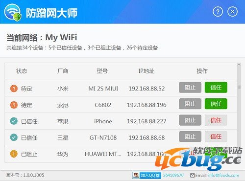求助开发团队。如果你仔细观察,会发现在主界面最下面有一个QQ群组,那里是可以点击的。点开后,你就可以申请加入防蹭网大师用户QQ群组了。这个群组是由开发团队维护的,只要在里边留言,他们一定会答复的。小编我的这些技能大部分是从这个群组学到的,哈哈。