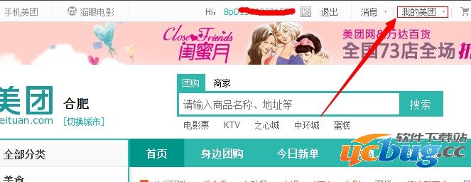 1、打开并登录美团网,并在右上角找到“我的美团”