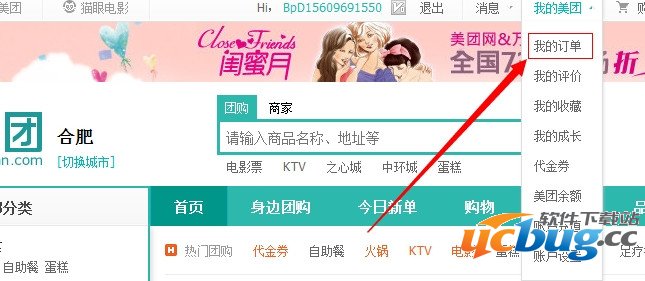 2、在“我的美团”下拉菜单中,点击“我的订单”
