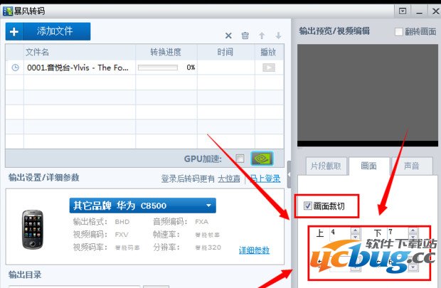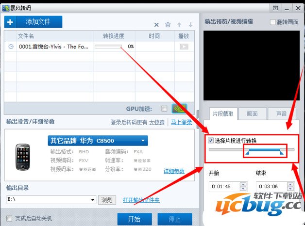 2、选择你要截取的片度,设置好画面大小,以及声音