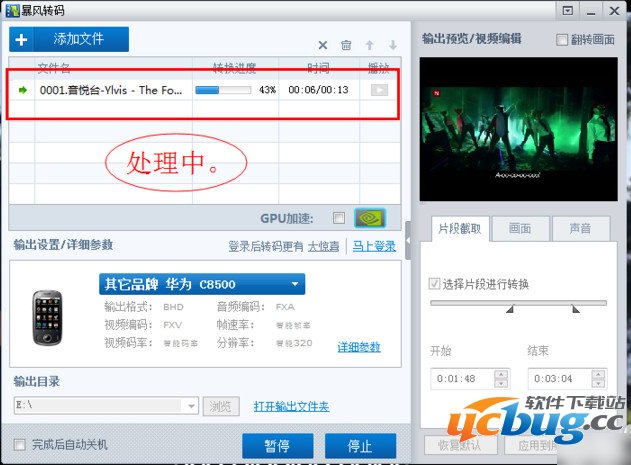 3、设置输出位置,然后我们点击“开始”,然后我们就可以等待处理了。