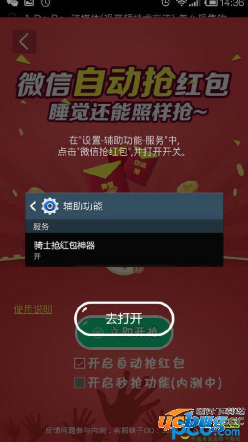 3.点击打开后会出现辅助功能,大家可以点击骑士抢红包神器;