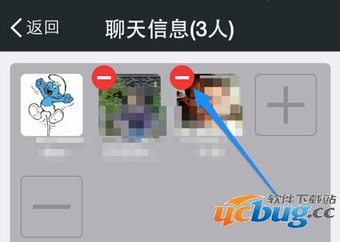 3.点击这个减号之后,现在你在你的群成员头像上面也有个“—”号,你点击这个人的头像,那么这个人就被你踢出群了。